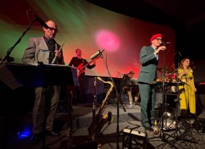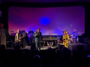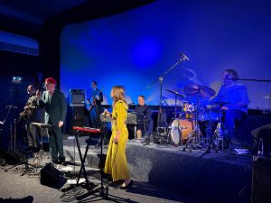 Was für ein fantastisch sprechender Name also, den der aus der Hamburger Schule stammende Jacques Palminger da für seine fünfköpfige Band mit der grandiosen Co-Sängerin Lydia Schmidt (die er lustigerweise „Pfefferkorn“ nennt) gefunden hat, die sich nicht nur auf sphärische Harmonie verstehen. Sondern die sich auch ganz offenkundig darauf verständigt haben, maximal spirituell inspirierten Space-Jazz der Marke John Coltrane, Pharoah Sanders oder Sun Ra (kongenial am Gebläse: Lieven Brunckhorst) mit Liedzeilen zu kreuzen, die ihrerseits das ganze Universum in sich bergen. Und sich einer Poesie des Sternenstaubs und des Weltenklangs verschrieben haben, die kombiniert ist, mit wohlklingender Allerweltsweisheit und multidimensionaler Absurdität. Sie beschwören Plejaden (offene Sternenhaufen also) und Unendlichkeiten, träumen beim warmen Klang von Richard von der Schulenburgs Fender-Rhodes von galaktischen Tänzern, die schneller als der Schall sind und reimen „Supernova Sonnenreflexion“ auf „bunten Luftballon“. Das ist zutiefst romantisch und witzig zugleich. Oder, wie es Knut Wenzel, an der Goethe-Universität in Frankfurt Inhaber des Lehrstuhls für Fundamentaltheologie und Dogmatik, als Gast des Abends resümierend auf den Punkt bringt: „Da klingt eine Unendlichkeitssehnsucht durch, die sich selbst nicht ernst nimmt. Und die doch auf der eigenen Wahrheit beharrt“.