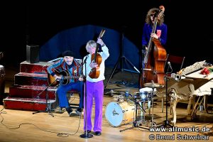 Aber je mehr man sich aufs rein Musikalische einlässt, ihm bei seinen Sprüngen über die Tonleiter zuschaut, wenn er etwa zu Duke Ellingtons „Mood Indigo“ am Vibraphon improvisiert oder sich selbst an den Drums begleitet, wenn er zu Läufen an seinem rokokohaft verschnörkelten Flügel ansetzt, dann weiß man: Alles ist gut. Er ist ein Multiinstrumentalist jener Klasse, die diese Zirkustruppen ausmachen, die im Fallen einen Kippmechanismus auslösen und anschließend Flic Flac schlagend durch die Lüfte wirbeln. Auch „Die Nowak“, Pianofrau mit Sinn fürs Schräge, ist zu Gast. Nicht als Hardcore-Fan, aber als eine, die ihn seit einem Open Air-Gastspiel in Regensburg „immer im Sichtfeld“ hatte. Sie, die um die Kunst weiß, wie man einen Saal in den Bann zieht, sie bewundert seine Fähigkeit, mit „sparsamsten Bewegungen“ alle im Saal verfügbaren Augen auf sich zu ziehen und dafür zu sorgen, dass die „Leute abbrechen vor Lachen“. Wahrscheinlich legt sie damit den Finger in jene deutsche Wunde, die dafür sorgt, dass Jazz allzu oft im Ruf der „Intellektuellenmusik“ steht. Helge Schneider aber, dem ewige Clown, gelingt es spielend, jegliche Barriere wegzuflexen und seinen Fans auf Augenhöhe zu begegnen. Als von den Rängen des Audimax eine kaum verständliche Aufforderung ertönt, retourniert Helge Schneider mit einer ordentlichen Portion Mutterwitz: „Ich hab‘ ein Mikro. Du hast keins!“ Riesenlacher. So landen also am Ende alle im Schnabel dieses Vollmeisenmanns. (Peter Geiger)