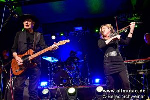 Georg Ringsgwandl stellte kürzlich bei einem Interview die Gegenfrage an mich, ob es Livemusik wie wir sie heute kennen, in fünf oder zehn Jahren überhaupt noch so geben wird. Zumindest war es dann ein Glücksfall mit PAVLOV’s DOG im VAZ Burglengenfeld nochmals eine Band erlebt zu haben, bei der Musik noch Facetten hat, Ebenen, zwischen denen sich Harmonien und Gefühle bewegen und wandern können. Die Band aus St. Louis/Missouri gibt es – mit Unterbrechungen – über ein halbes Jahrhundert. Aber David Surkamp mit seinem prägnanten Falsett ist noch immer ein agiler Kristallisationsknoten, der geschickt weiß, wie er buchstäblich historisch zu nennende Prog-Rock-Klassiker mit den Songs des aktuellen Albums „Wonderlust“ so zu vermengen hat, dass ein homogenes Set daraus wird. Er und Geigerin Abbie Steiling sind auch die optischen Frontpunkte. Steiling wirbelt im Gegenlicht mit Geige und Mähne, dass ein schönes Bild nach dem anderen erwächst. Und David Surkamp bemerkt mal den Fokus der Kamera auf sich gerichtet und bedankt sich quasi mit einem kurzen Stippen an seiner Hutkrempe und einem Lächeln. Beides auch optische Kommunikationseckpunkte, die sich gleichsam in den Songs widerspiegeln. Der Auftritt hätte durchaus mehr Publikum verdient gehabt! Gerne auch Jüngeres! Aber auf dem Parkplatz waren auch etliche Autos mit tschechischen Kennzeichen, die um den Schatz wussten und dafür belohnt wurden, dass sie die Kilometer gefressen hatten. (Bernd Schweinar)