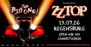 Billy F. Gibbons kommentierte: „Wir lieben es, für das europäische Publikum zu spielen. Sie gehören seit fünf Jahrzehnten zu den energiegeladensten und leidenschaftlichsten Fans überhaupt. Wir können es kaum erwarten, ‚The Big One!‘ rüberzubringen. Ihr könnt euch sicher sein: Wir drehen voll auf und lassen’s richtig krachen. Und was die Verständigung angeht – da gibt’s keine Sprachbarrieren. Am Ende sprechen wir alle dieselbe Sprache: Rock’n’Roll.“ ZZ Top blicken auf eine beeindruckende Karriere zurück, die 1969 mit ihrem Debüt in der Knights of Columbus Hall in Beaumont, Texas, begann. Seitdem haben sie weltweit mehr als 60 Millionen Alben verkauft. Vier davon wurden von der RIAA mit Gold ausgezeichnet, sechs erhielten Platin, und ihr Album Eliminator erreichte mit über 10 Millionen verkauften Exemplaren Diamantstatus. Hinzu kommen acht Top-40-Hits sowie zwei Videosammlungen, die mit Platin ausgezeichnet wurden. Für ihr außergewöhnliches Schaffen wurden ZZ Top 2004 von Keith Richards von den Rolling Stones in die Rock and Roll Hall of Fame aufgenommen. Übrigens ist das Konzert in Regensburg das einzige in Bayern und erst die zweite Show des Trios in unserer Gegend, den fast genau vor 30 Jahren – am 20. Juli 1996 – rockten ZZTop beim Sarchinger Weiher Festival erstmals die Oberpfalz. Welcome back, ZZ Top!