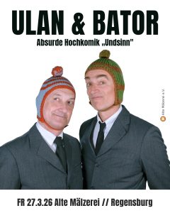 Zum Auftakt kommt die „Comedy-Newcomerin des Jahres“ Maria Clara Groppler (5. März, Alte Mälzerei) nach Regensburg. Mit gnadenlos ehrlichem Humor beleuchtet sie die Probleme der Meerjungfrau im 21. Jahrhundert. Tabulos, scharfsinnig, manchmal albern, aber vor allem eins: lustig! Ihr folgen Simon & Jan (20. März, Alte Mälzerei). Mit nahezu allen Kleinkunstpreisen ausgezeichnet präsentieren die beiden Musikkabarettisten in ihrem Programm das Beste aus 16 wilden Liedermacherjahren – irgendwo wischen grandiosem Unsinn und beißender Sozialkritik. Das Markenzeichen von Ulan & Bator (27. März, Alte Mälzerei) sind die Pudelmützen. Niemand sonst verbindet Poesie, Comedy, Kabarett, Körperperformance, Tanz und Gesang derart zu einem Kunstwerk. Einzigartiger Humor, der längst über Vergleiche mit Monty Python und Loriot hinausgeht. Auch Matthias Egersdörfer (9. April, Alte Mälzerei) gehört zu den aktuell erfolgreichsten deutschen Humoristen. Der fränkische Kabarettpreisträger ist bekannt für seine theatralen Meisterwerke, für seinen trockenen Humor, seine lebhaften Improvisationen und seine Raserei. Beim Comedy Slam (15. April, Alte Mälzerei) stellen sich mehrere Newcomer und Comedians einem gnadenlosen Wettbewerb. Alle Teilnehmer haben maximal zehn Minuten Zeit ihr Talent zu beweisen. Am Ende des Abends entscheidet das Publikum, wer sich als Siegerin oder Sieger küren darf. Teresa Reichl (24. April, Marinaforum) ist eine der Senkrechtstarterinnen der deutschen Kabarett- und Comedy-Szene. Ausgezeichnet mit dem Bayerischen Kabarettpreis (Senkrechtstarter-Preis) und dem Deutschen Kleinkunstpreis (Förderpreis). Die Wahl-Regensburgerin ist mit ihrem gefeierten Soloprogramm „bis jetzt“ zu erleben. Maxi Schafroth (9. Mai, Marinaforum) bringt dem Publikum mit seinem Programm „Faszination Bayern“ die Vielseitigkeit des bayerischen Landes näher und zerlegte dabei Ländliches wie Kleinbürgerliches, Bauernschläue, Banker-Chuzpe und alternative Betulichkeit in ihre komische Banalität. Insgesamt bietet der Kleinkunstfrühling zehn wunderbare Abende für Kenner, für Fans und für alle, die dachten, sie wüssten schon was große Kleinkunst ist.