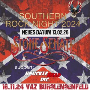 Im zweiten Anlauf stand die Südstaaten-Combo auf der Bühne im VAZ. Stone Senate werden als eine härtere Version von Lynyrd Skynyrd gekreuzt mit The Allman Brothers Band bezeichnet – soweit Presseankündigungen. Der Vergleich mit den Allmans hinkte gewaltig. Und nur weil jemand aus Nashville kommt oder in die Southern-Rock bzw. Country-Rock-Schublade gelabelt wird, muss das kein Freibrief sein. Der Band werden seit 2012 über 600 Gigs nachgesagt. Aber es ist auch ihr Leid, dass es Bands wie sie in den USA zahllose gibt, die sich auf hohem technischen Können den Arsch abspielen. Ein Level, das viele deutsche Bands nie erreichen werden. Stone Senate sind eine gute Band, homogen, spielfreudig – aber in den USA ist das halt kein Freibrief. Sänger Clint Woolsey ist ein Hühne mit durchaus ansprechender Präsenz – und auch sehr guter Stimme. Die beiden Gitarristen sind Sahne. Aber das Songmaterial ist nach einer gewissen Weile irgendwie Standard. Guter Standard! Vielleicht lag es auch am (nicht verdienten!) überschaubaren Besuch. Aber groß im Gedächtnis bleiben sie jetzt subjektiv nicht. Obwohl sie nicht schlecht waren! Viele Riffs, gute Gitarren, ein Schuss zu wenig Americana und ein noch zu wenig abwechslungsreiches Songwriting. Vielleicht waren durch die aufgedrehte PR einfach nur die Erwartungen zu hoch? (Bernd Schweinar)